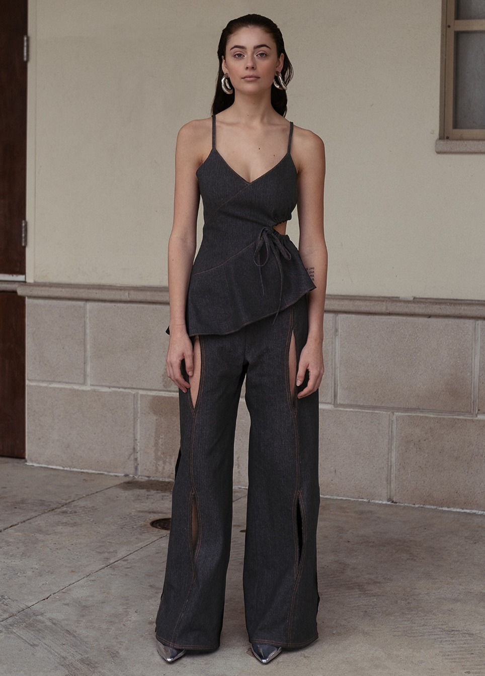 Denim Undulating Seams Pants